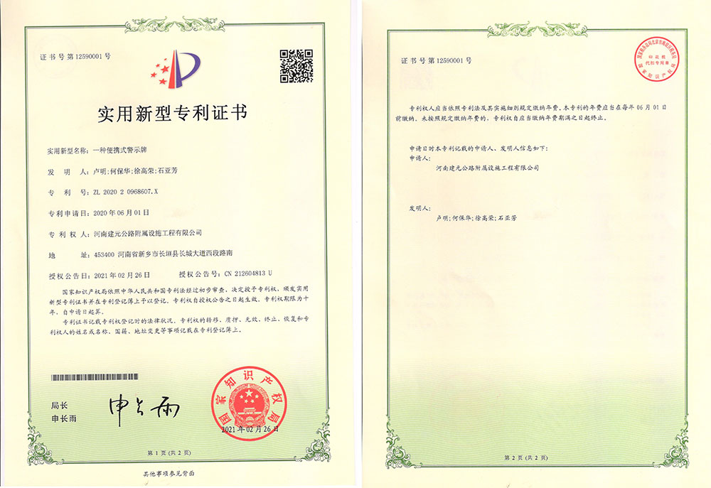 實(shí)用新型專利證書